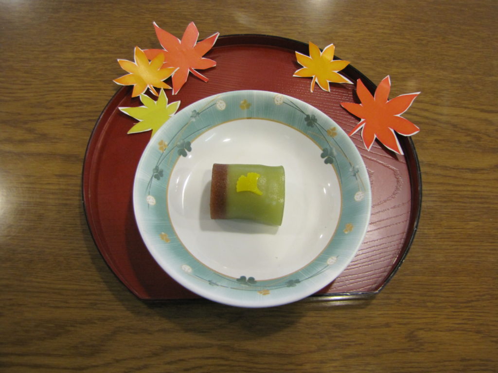 昼食、おやつ(練りきり)は「綺麗な盛り合わせね、もみじの人参が良いわね」「このおやつ美味しい、もう1つ食べたい」と大好評でした。皆様美味しそうに召し上がっていました。
