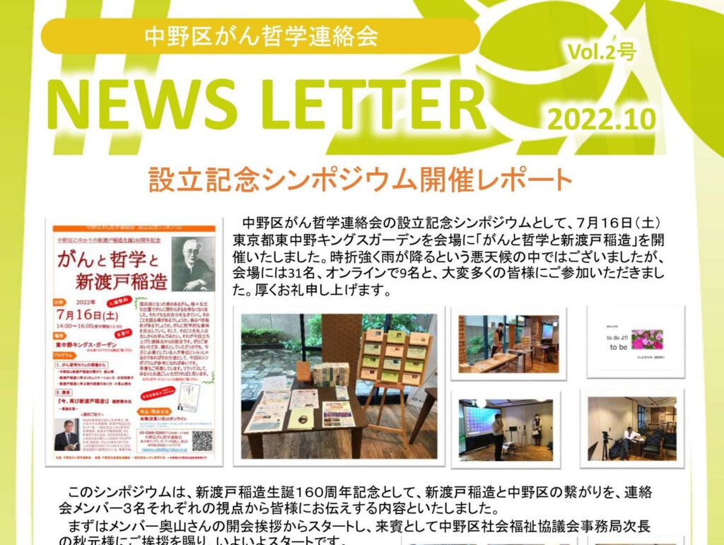 レポートしたニュースレターができました ご感想もいただけて感謝 先日の『中野区がん哲学連絡会設立記念シンポジウム』の模様…