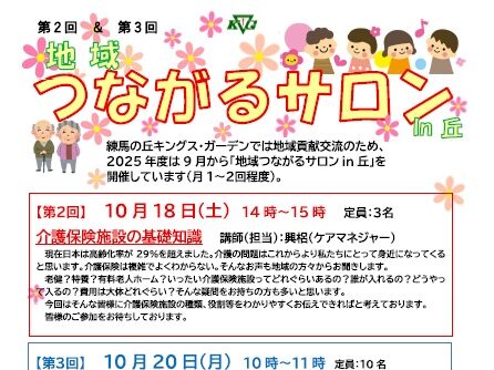 【練馬の丘KG】(10/18&20)第2回&第3回地域つながるサロンin丘「介護保険施設の基礎知識」「筋…
