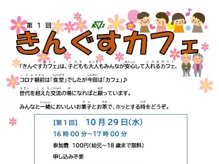 【練馬の丘】(10/29)第1回きんぐすカフェ 【第1回】 10月29日(水) 16時00分~17時00分 参加…