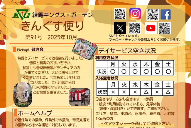 【練馬KG】きんぐす便り10月号 こんにちは✨このたびきんぐす便り10月号を発行しました👀…