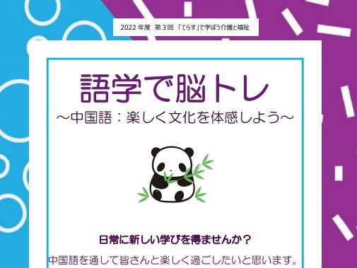 11/27(日)「語学で脳トレ」中国語:楽しく文化を体験講座を開催 今年度、早くも3回目の「てらすで学ぼう!介護と福祉」…