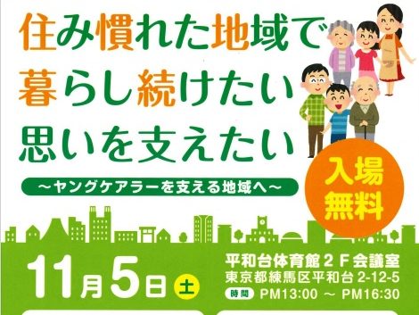 「住み慣れた地域で暮らし続けたい思いを支えたい」 ~ヤングケアラーを支える地域へ~ ▼日時:11月5日(土)午後1時~午…