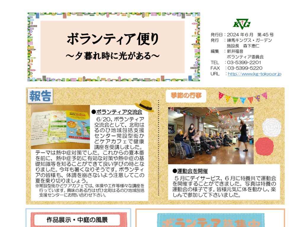 【練馬KG】ボランティア便り2024年6月 第45号発行 練馬キングス・ガーデンでは、ボランティア便り2024年6月、第…