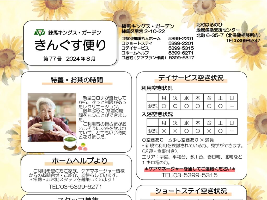 【練馬KG】きんぐす便り(8月号) こんにちは✨このたび8月号を発行しました👀求人情報、各…
