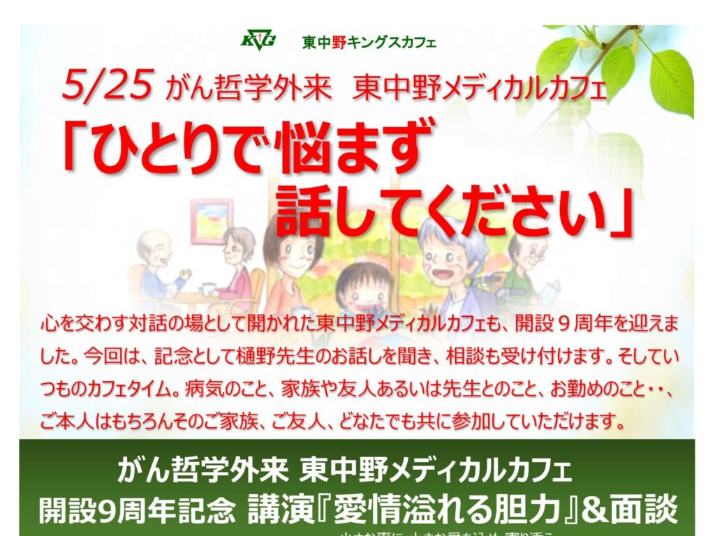 【東中野KG】がん哲学外来・東中野メディカルカフェ 心を交わす対話の場として開かれた東中野メディカルカフェも、開設9周…