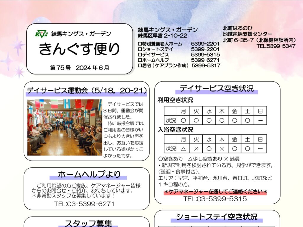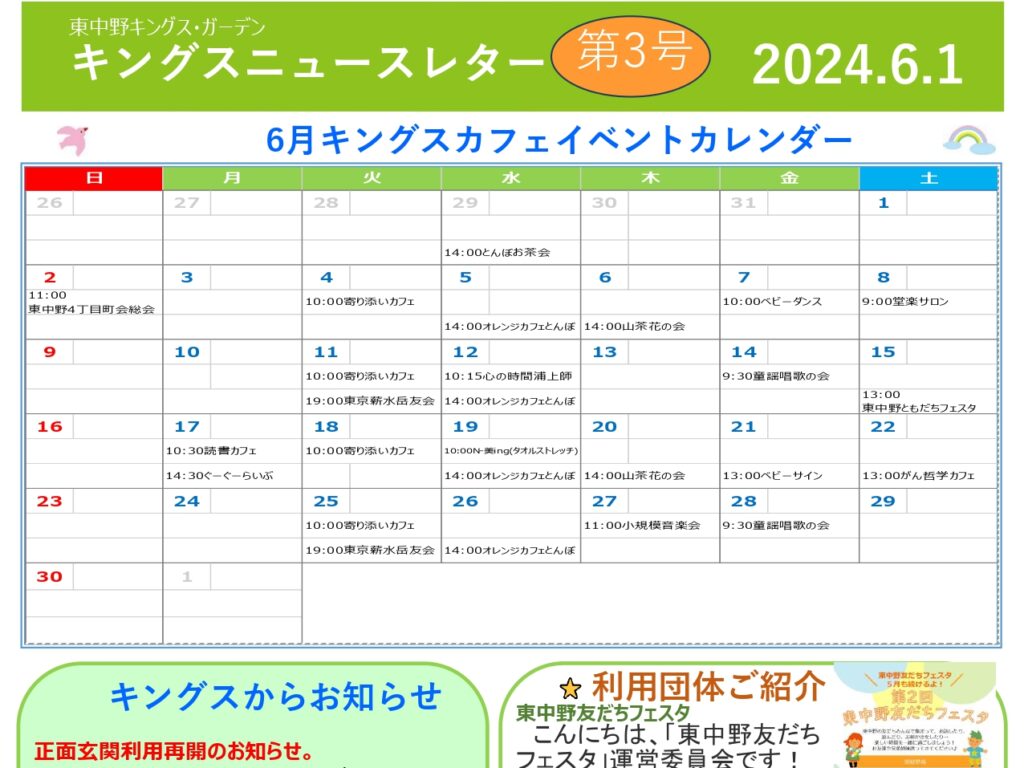 【東中野KG】キングスニュースレター6月号 こんにちは✨東中野キングス・ガーデンです。6月分のニュースレタ…