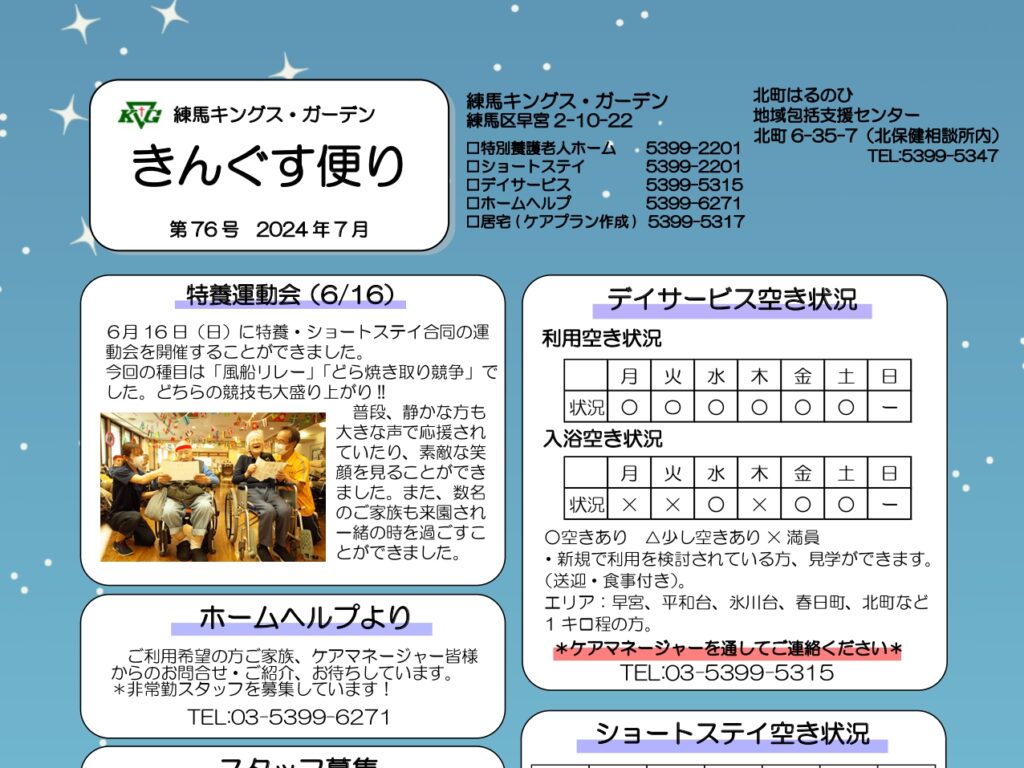 【練馬KG】きんぐす便り(7月号) こんにちは✨このたび7月号を発行しました👀求人情報、各…