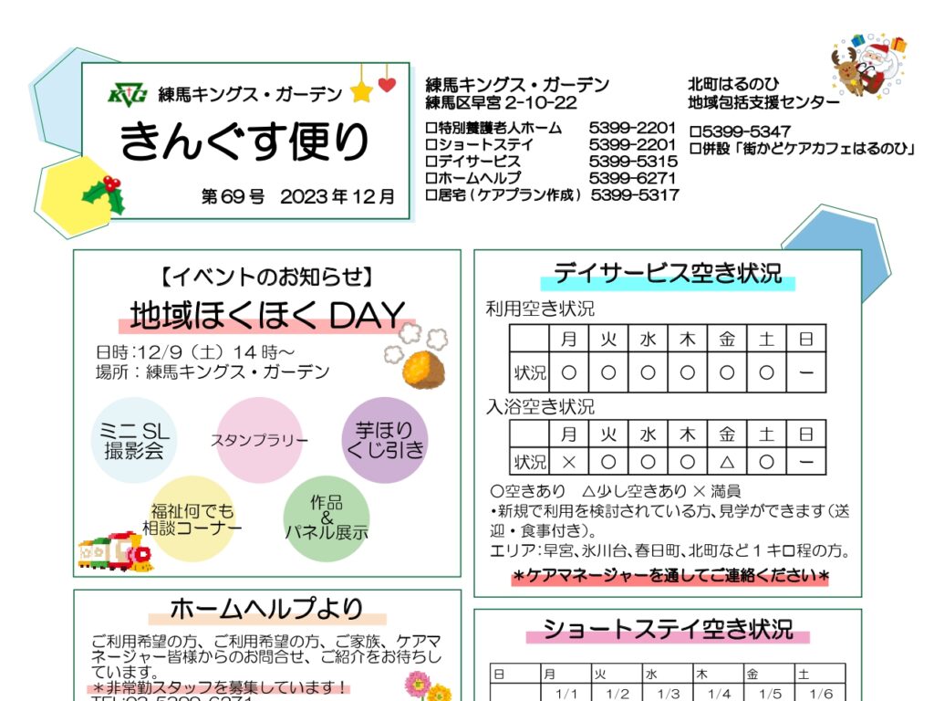 【練馬KG】きんぐす便り(12月号) 練馬キングス・ガーデンでは月に一度、地域の皆さま、ケアマネジャーの皆さまなど、関係…
