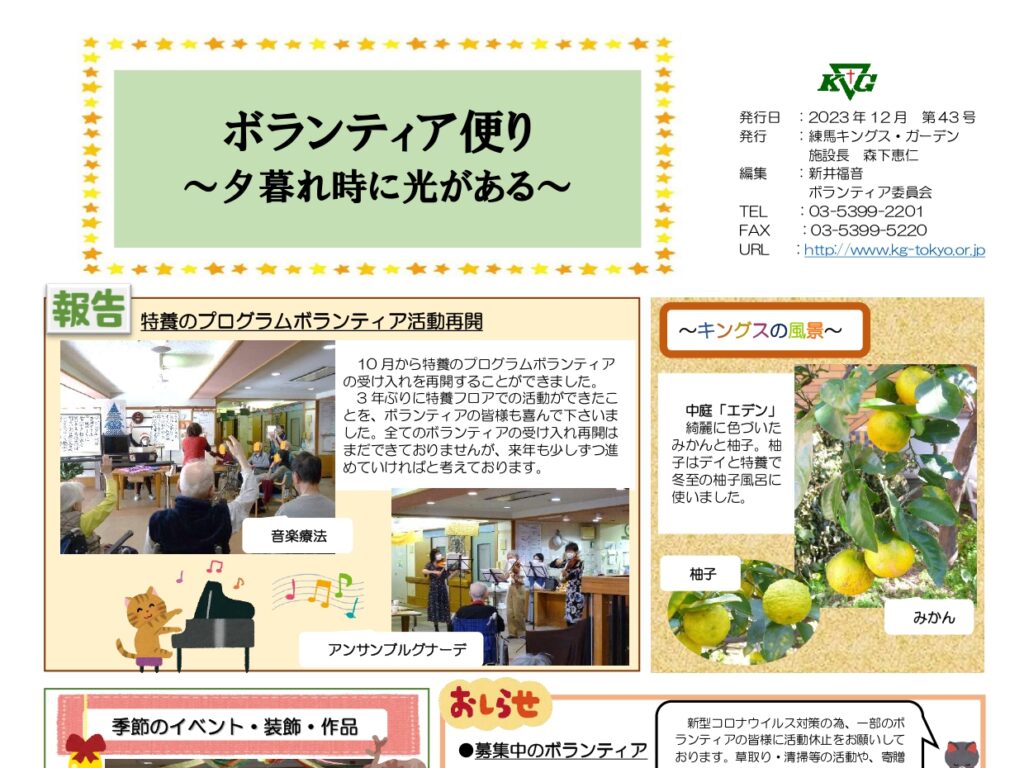 【練馬KG】ボランティア便り2023年12月 第43号発行 練馬キングス・ガーデンでは、ボランティア便り2023年12月…