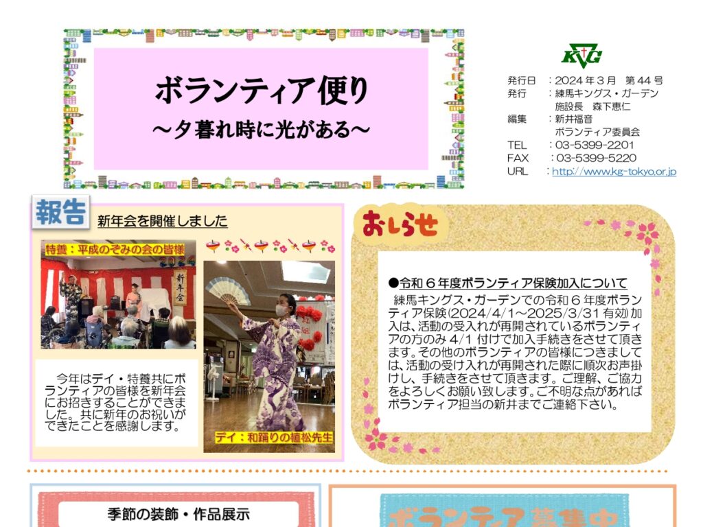 【練馬KG】ボランティア便り2024年3月 第44号発行 練馬キングス・ガーデンでは、ボランティア便り2024年3月、第…