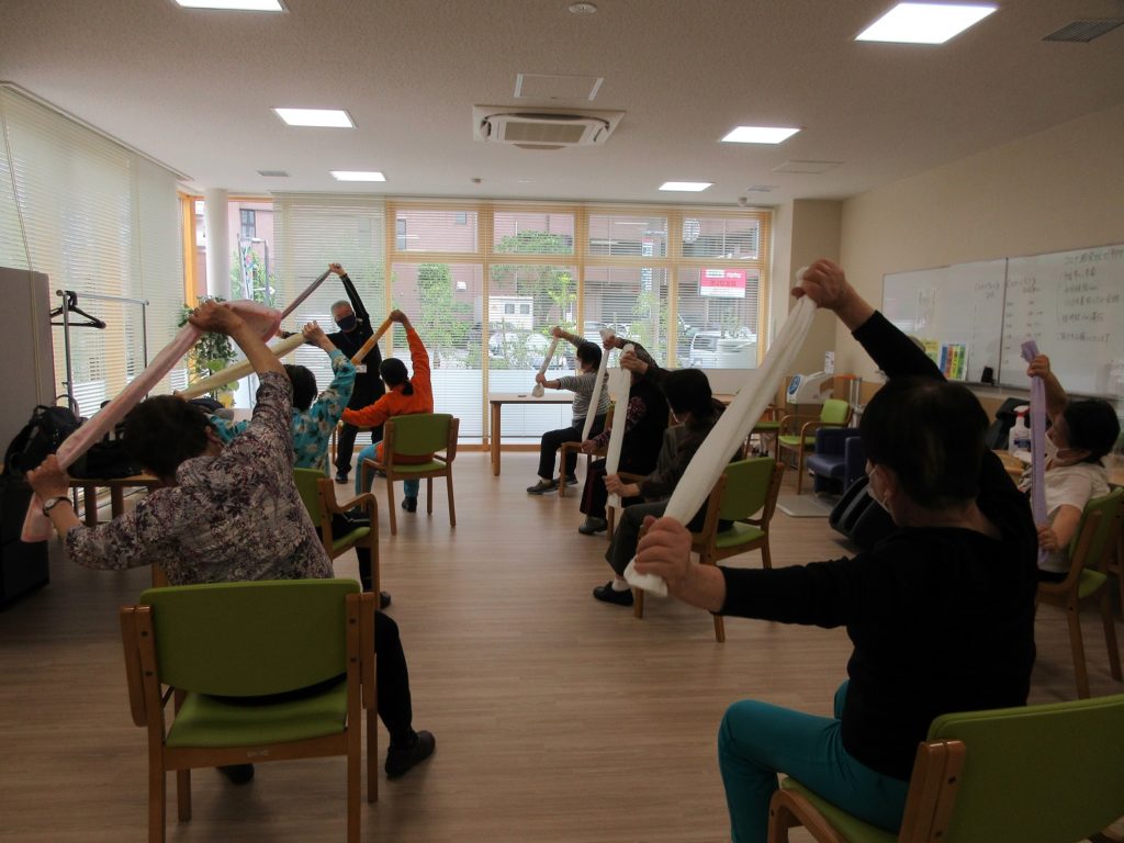 地域の皆様が気軽に集い、お茶を飲みながら、介護予防について学んだり、体操に参加したりすることができる場として、「街かどケアカフェはるのひ」が併設されています。