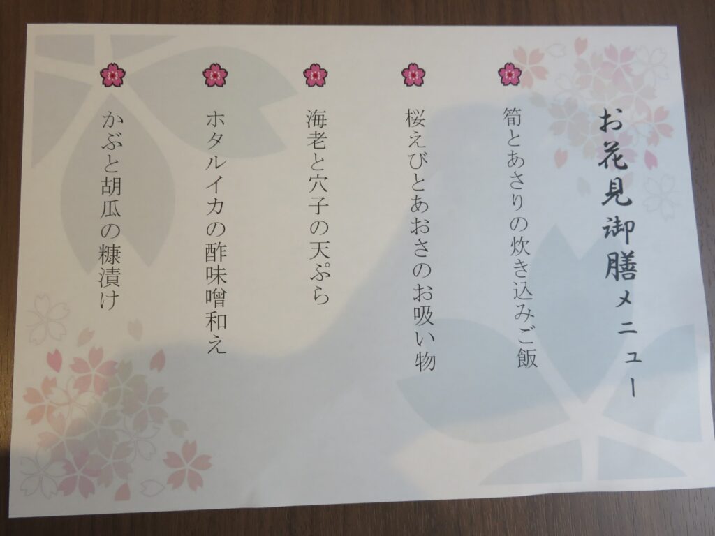 今回はまさに新年度1日目、4月1日に行った「お花見御膳」の様子をお知らせします。