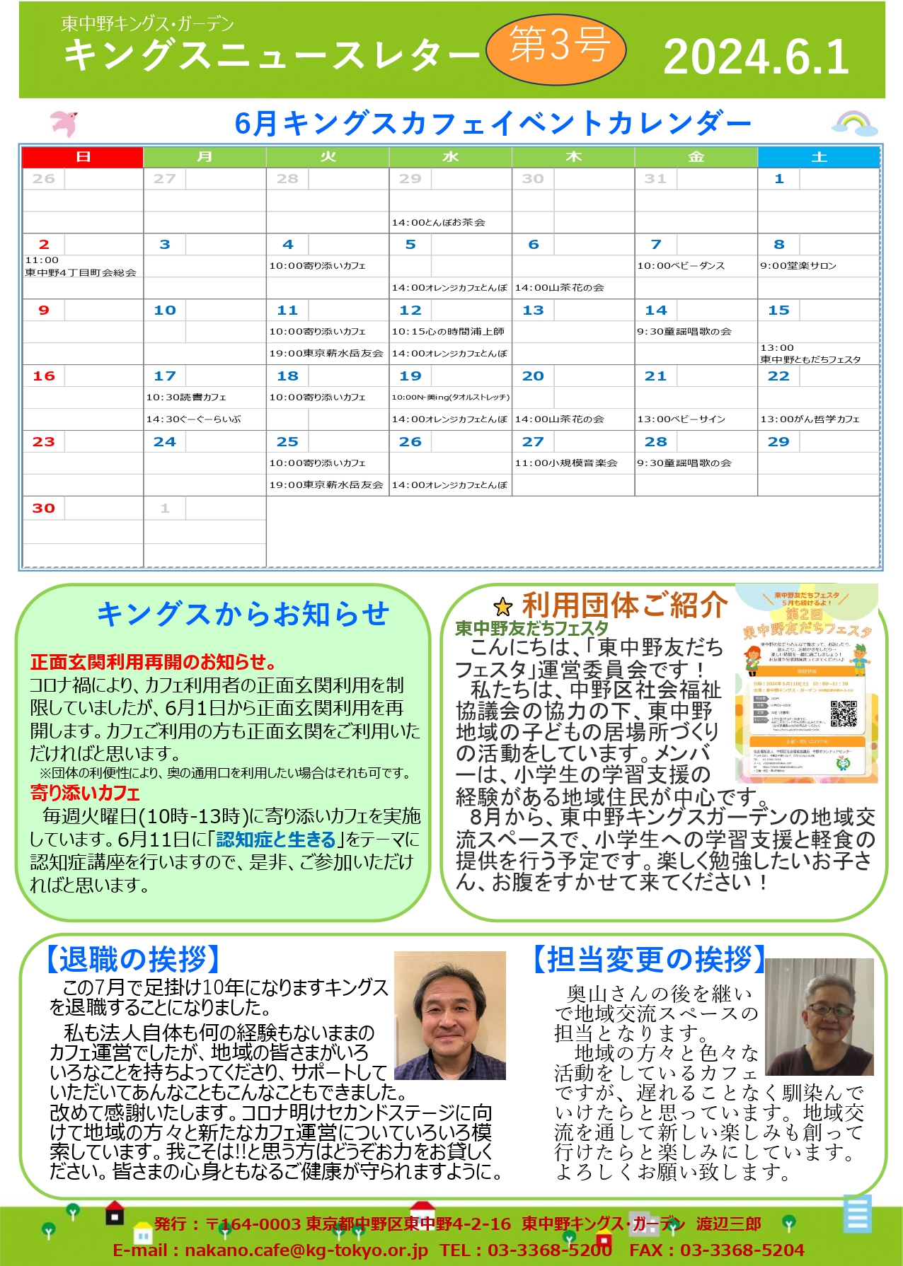 【東中野KG】キングスニュースレター6月号 6月 1, 2024 By kgtokyo 【東中野KG】キングスニュースレター6月号 こんにちは✨東中野キングス・ガーデンです。6月分のニュースレターを発行しました。イベント情報も掲載しているのでぜひご活用ください👀 コメントを残す コメントをキャンセルメールアドレスが公開されることはありません。 ※ が付いている欄は必須項目ですコメント ※ 名前 ※ メール ※ サイト 次回のコメントで使用するためブラウザーに自分の名前、メールアドレス、サイトを保存する。