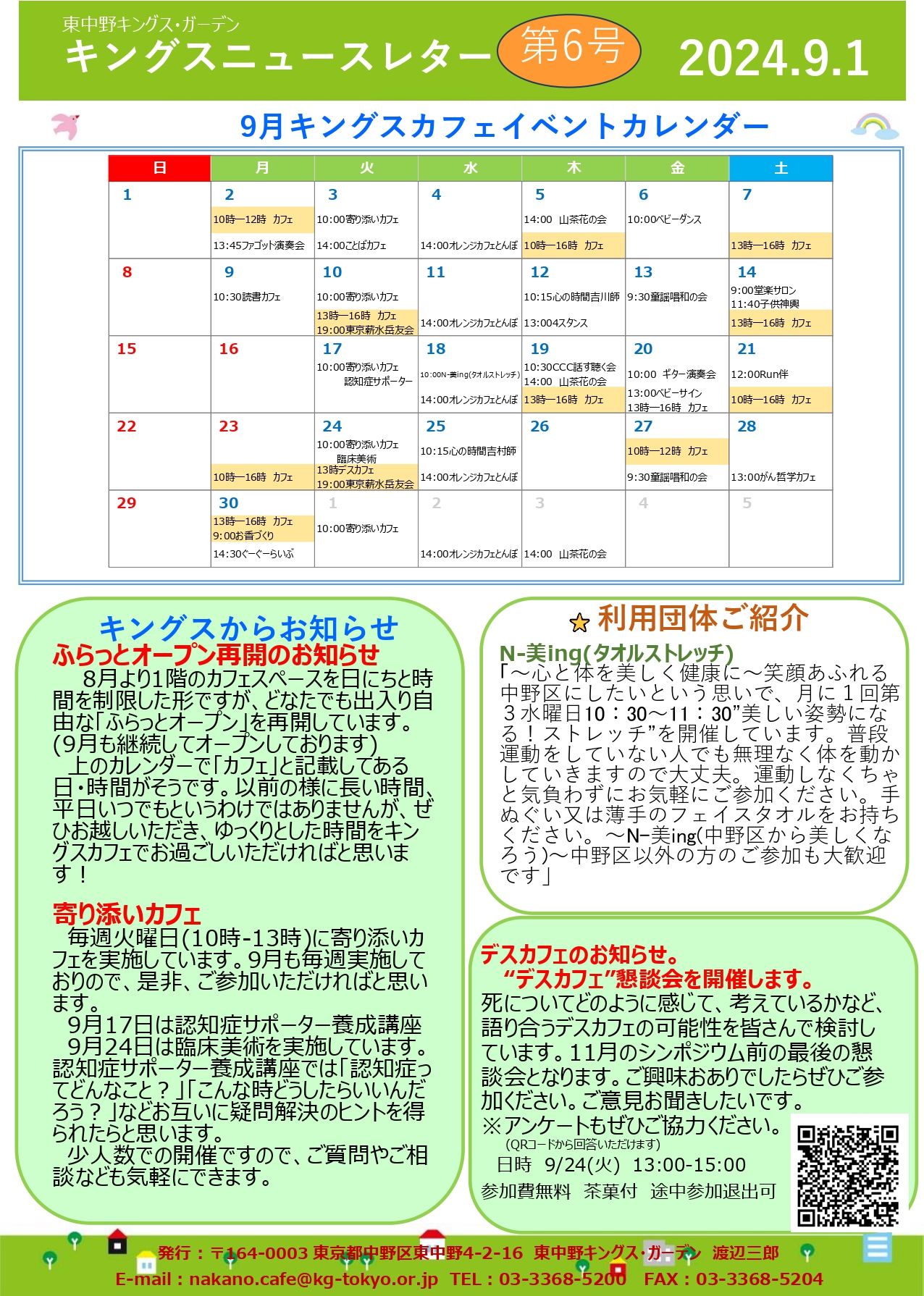 【東中野KG】キングスニュースレター9月号