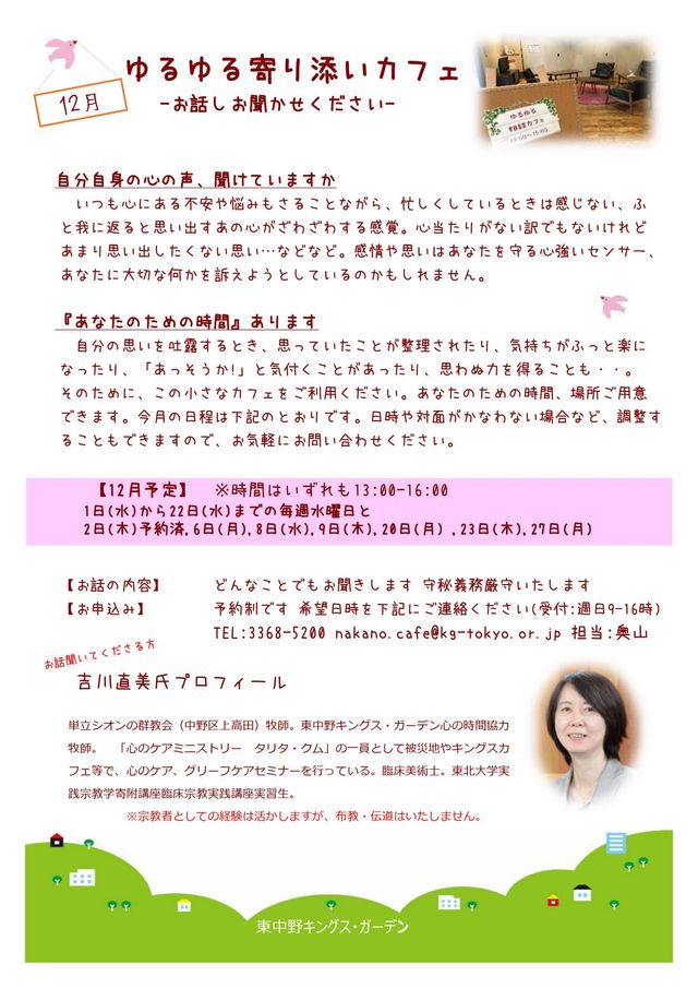 2021年12月 東中野キングス・ガーデン フェイスブックより(一部編集)