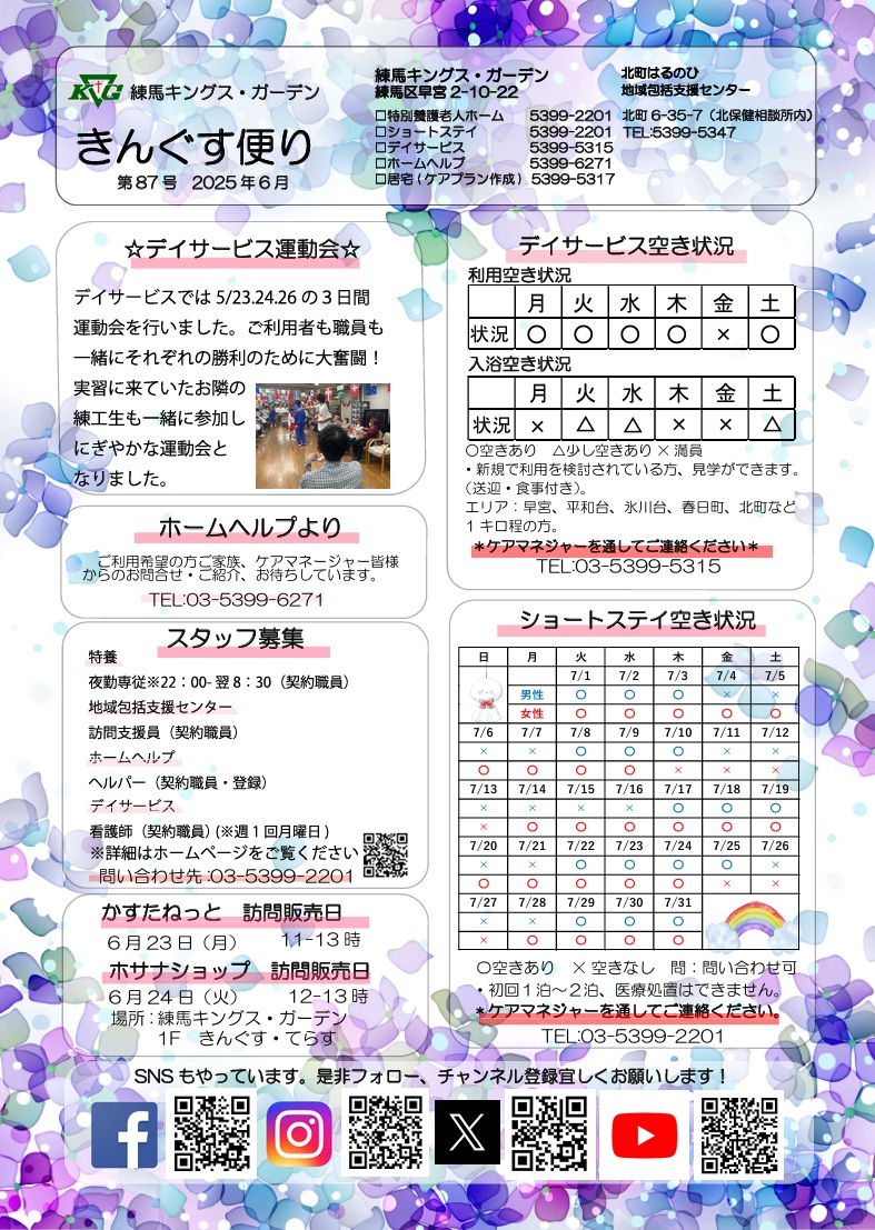 【練馬KG】きんぐす便り6月号 6月 6, 2025 By kgtokyo 【練馬KG】きんぐす便り6月号 こんにちは✨このたびきんぐす便り6月号を発行しました👀求人情報、各サービスの空き情報をぜひご活用ください!