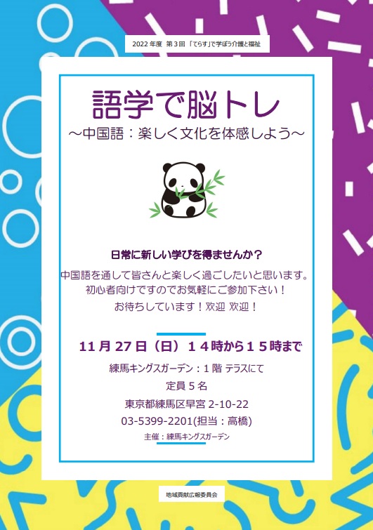 11/27(日)「語学で脳トレ」中国語:楽しく文化を体験講座を開催