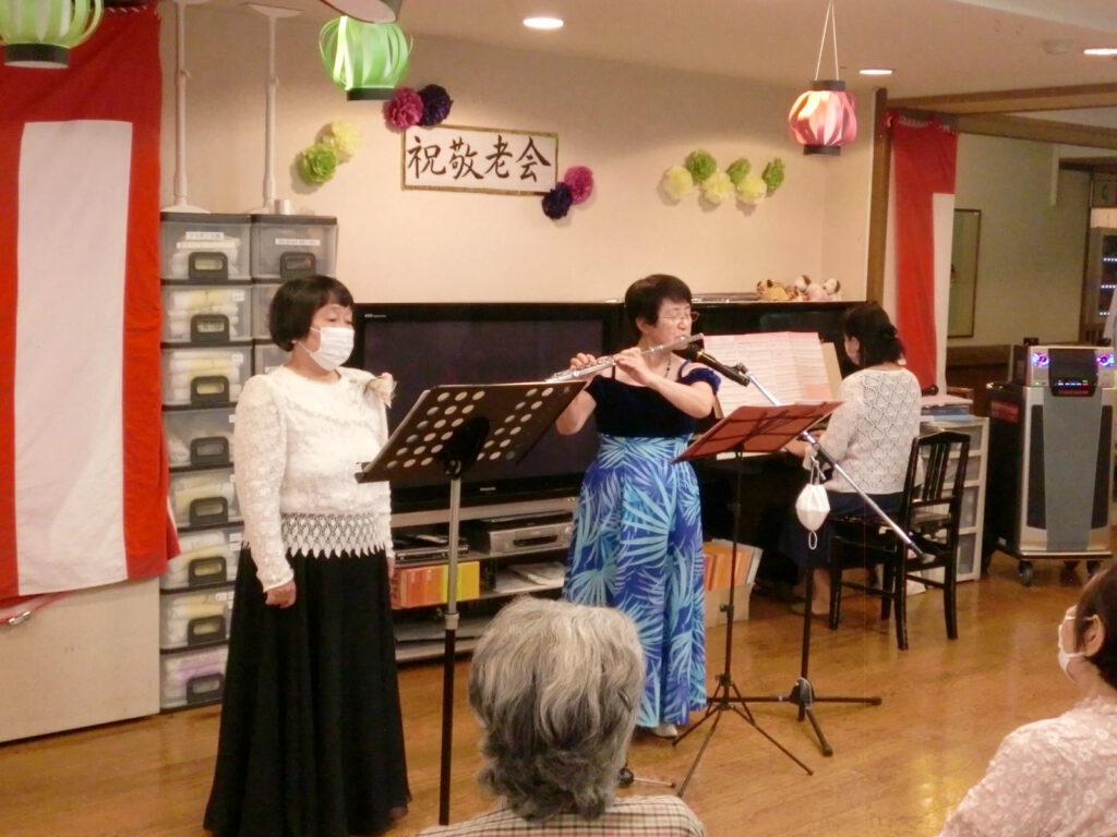 2日目3日目は『プルミエによるコンサート』を行いました。季節の歌、フルート演奏、ピアノ演奏を披露して頂きました(ソーシャルディスタンスを保ちマスク装着ものと実施)。「感謝感激でした」「楽しかった」「素敵でした」と好評でした。