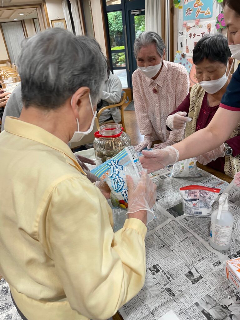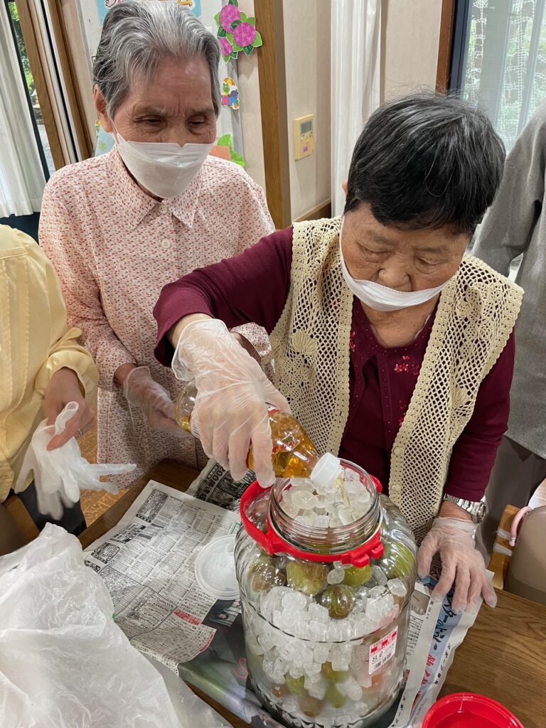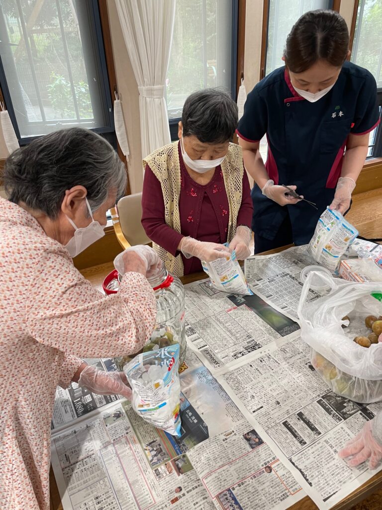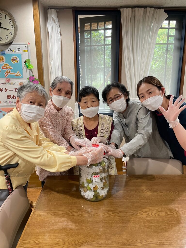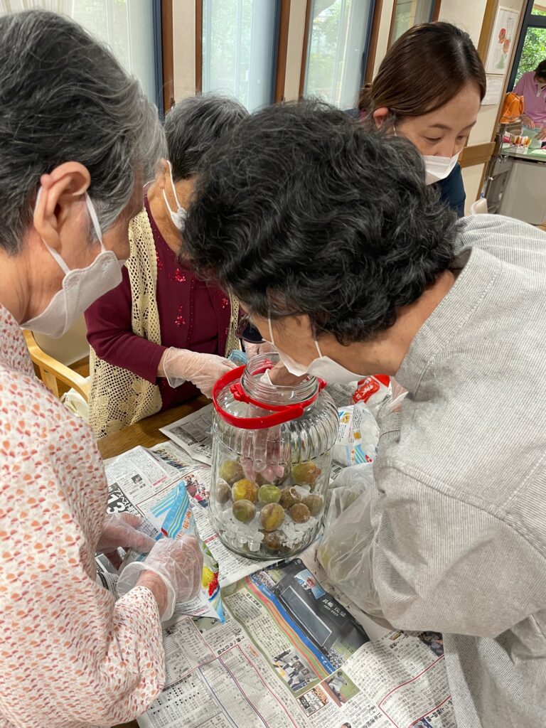 「昔、梅干を付けた事を思い出したわ」など会話が弾みながら、楽しんで漬けました。