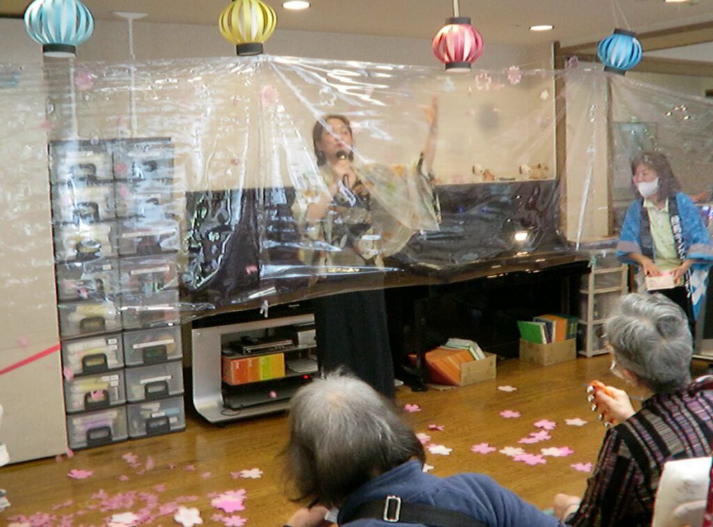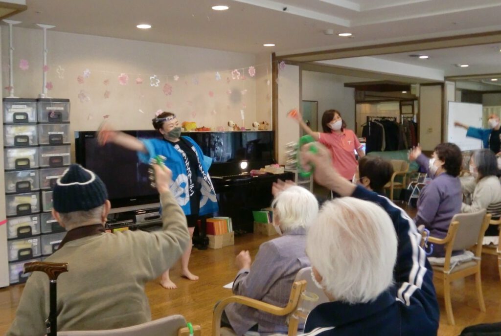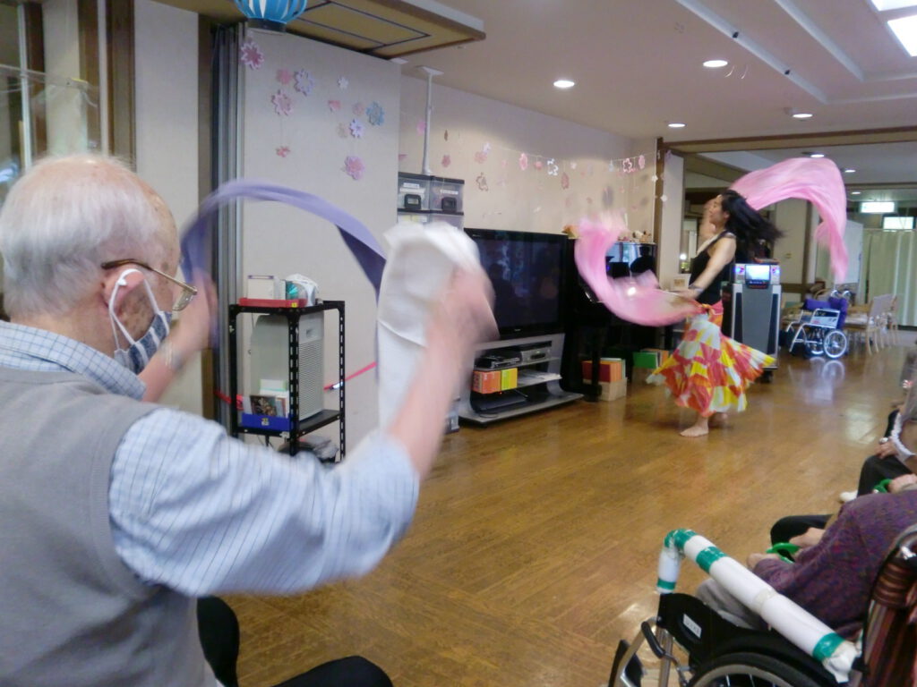 中には職員と一緒に踊って下さる方もおられたり、皆様には「感激したわ。」「楽しかったわ」「外出するより良かったよ」等声を掛けて下さる方もおられ、皆様に喜んで頂けました。