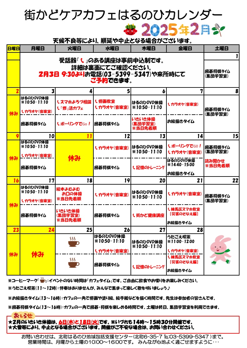 ⛄出張型街かどケアカフェはるのひ⛄2月日程↓