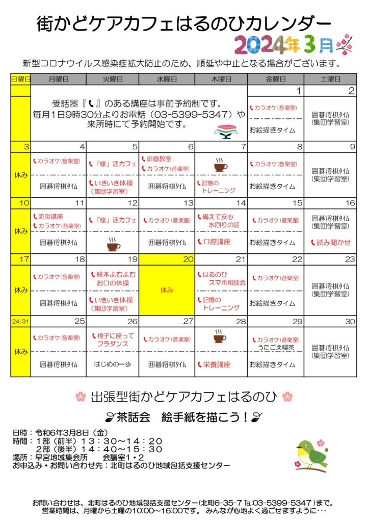 【街かどケアカフェ】3月 はるのひカレンダー