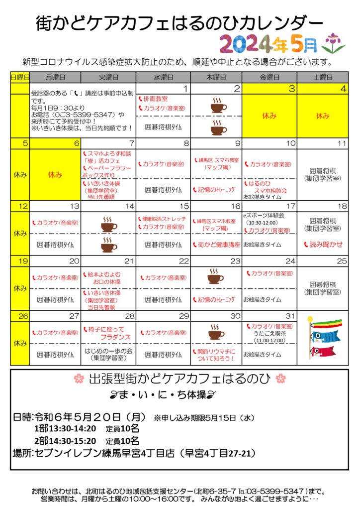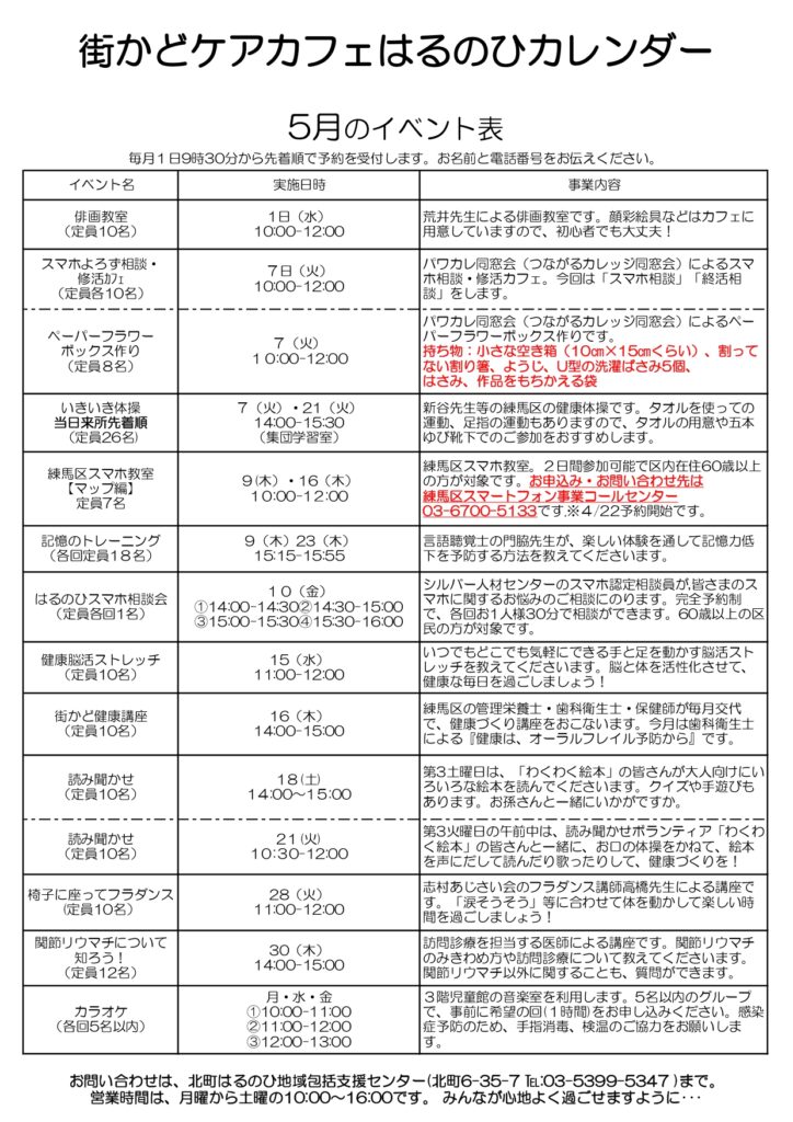【街かどケアカフェ】5月 はるのひカレンダー