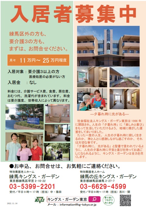 特別養護老人ホームの入居者を募集しています。