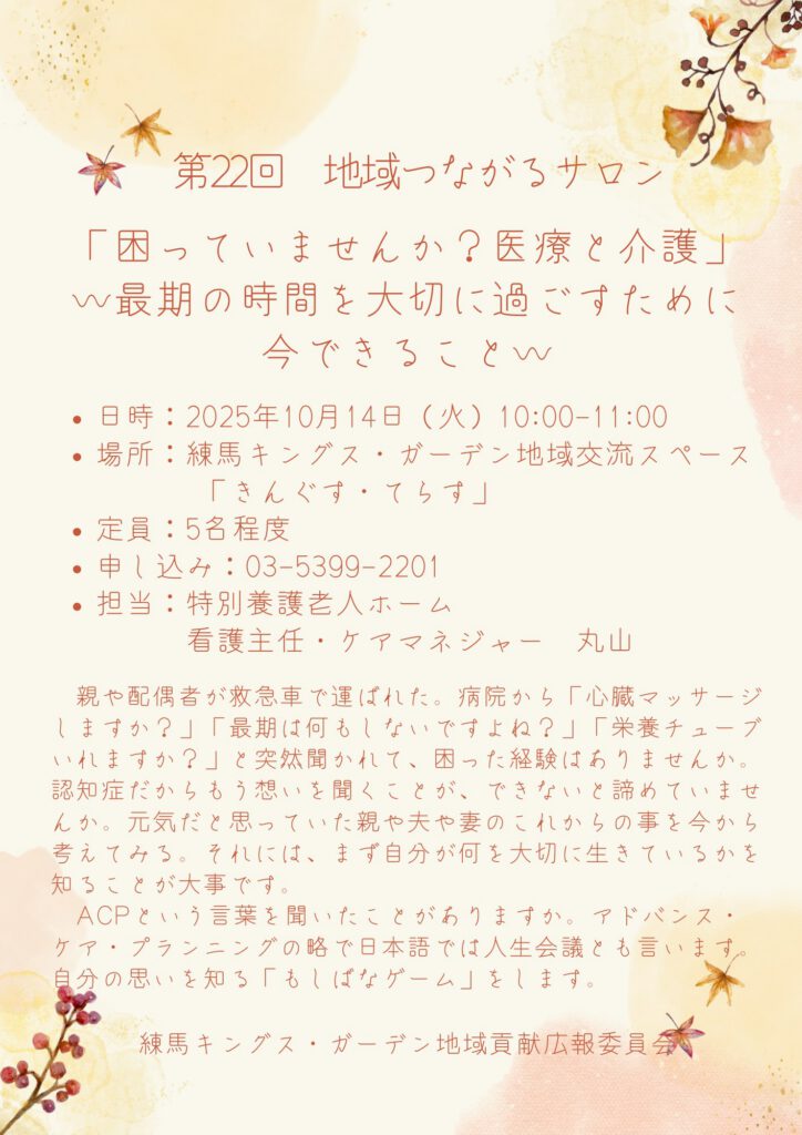【練馬KG】10/14開催!地域つながるサロン