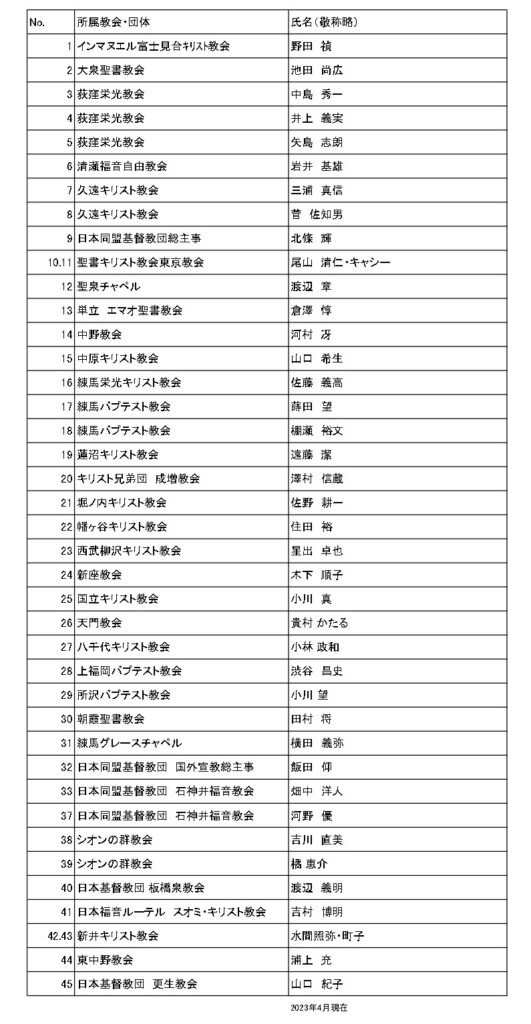 協力牧師の先生方も同様です。現在、教団・教派を超えて、30以上の教会の牧師先生等が、献身的に当施設の働きに関わってくださっています。
