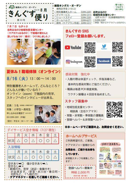 【練馬KG】「きんぐす便り」「はるのひカレンダー」8月号発行