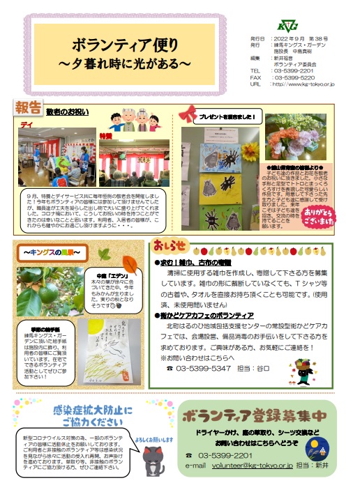 【練馬KG】ボランティア便り2022年9月 第38号発行